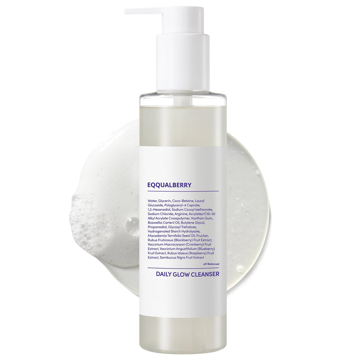 Eqqualberry Daily Glow Cleanser is a renewed and improved gel formula, now with even more hydration benefits and enhanced skin radiance. Featuring plant-based surfactants like coconut and corn extracts, this gentle cleanser deeply hydrates, leaving your skin luminous and refreshed. It is clinically proven to boost the skin's natural glow whilst adding moisture and protection. Designed to be gentle on your skin, it ensures a thorough cleanse without irritation, making makeup removal easy and hassle-free.