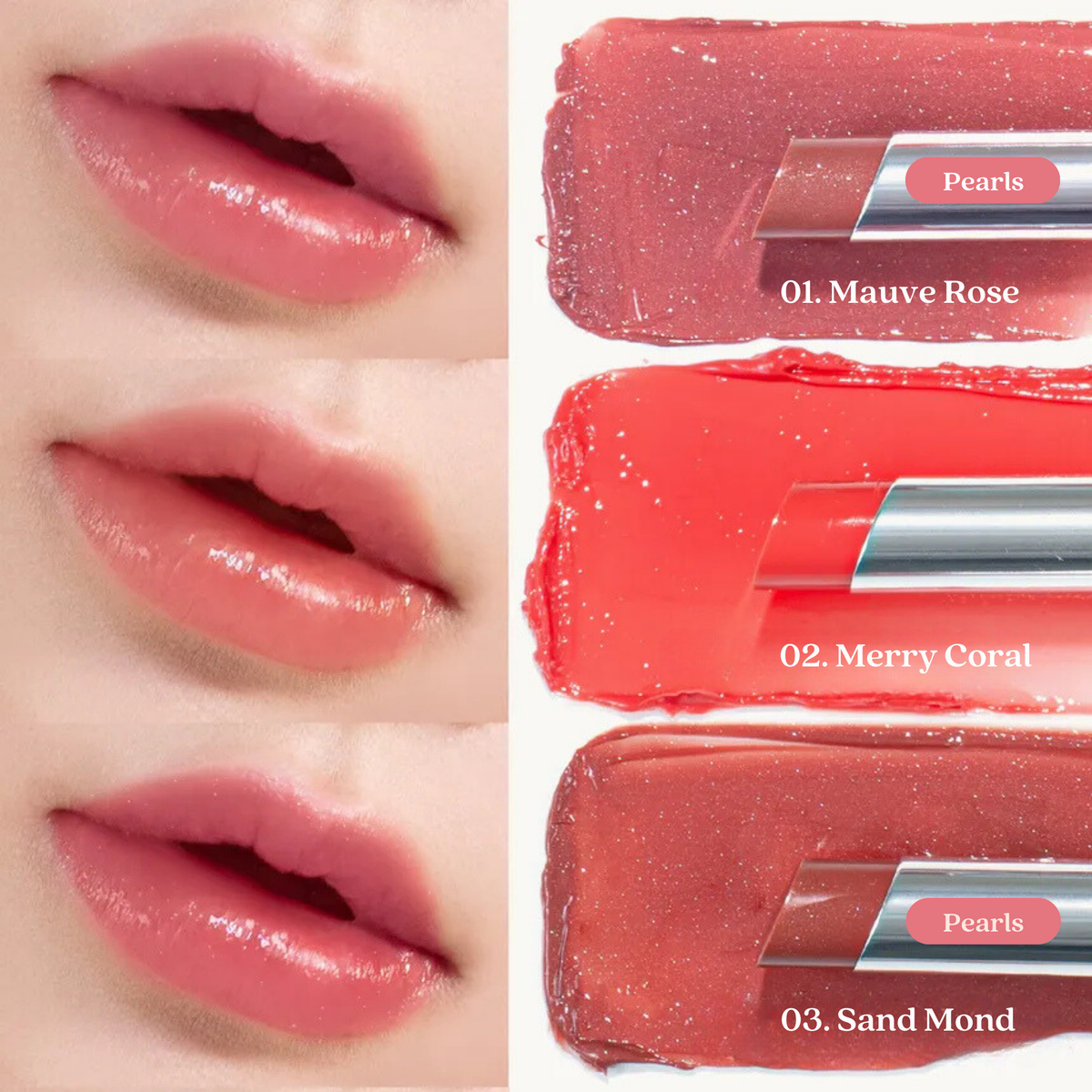 01 Mauve Rose: A cool-toned bright pink with a sprinkle of sparkles that enhances your natural lip colours.